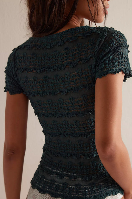 Long Sleeve Boat Neck Mesh Tee - Athena