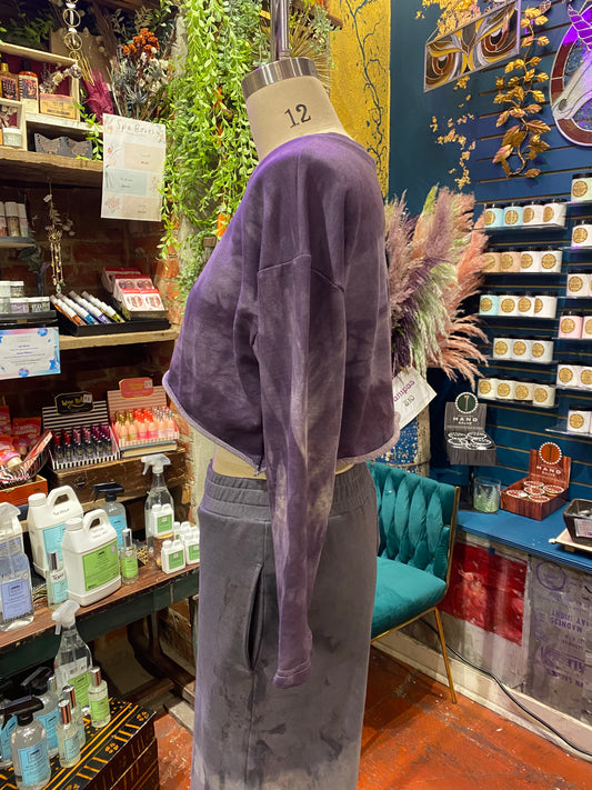 Custom Dyed Cropped Sweatshirt - Purple Sky