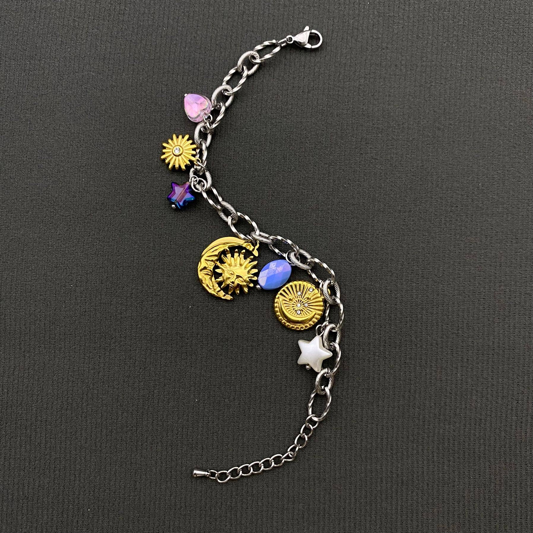 18K Gold Plated S.Steel Sun Moon Star Charm Bracelet