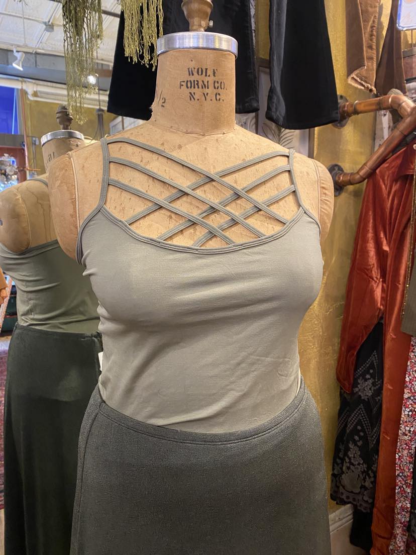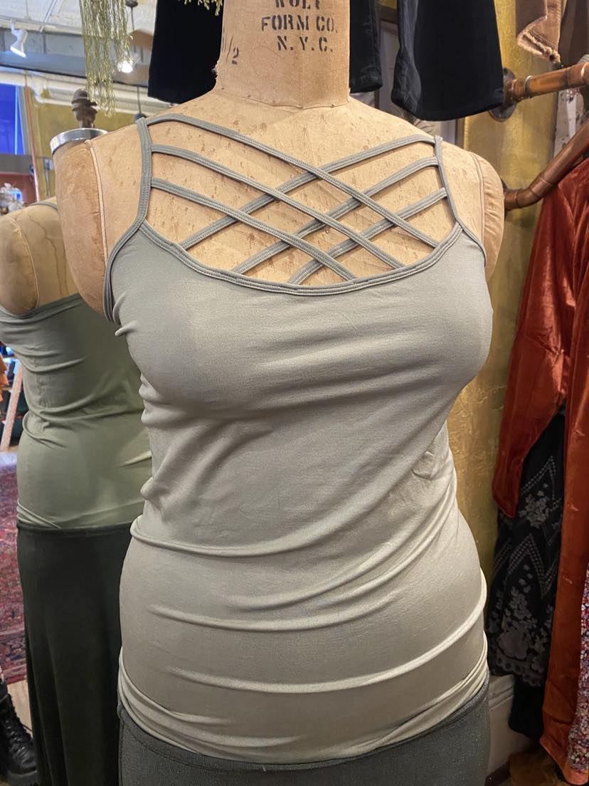 Plus Seamless Triple Cross Front Cami - Light Olive