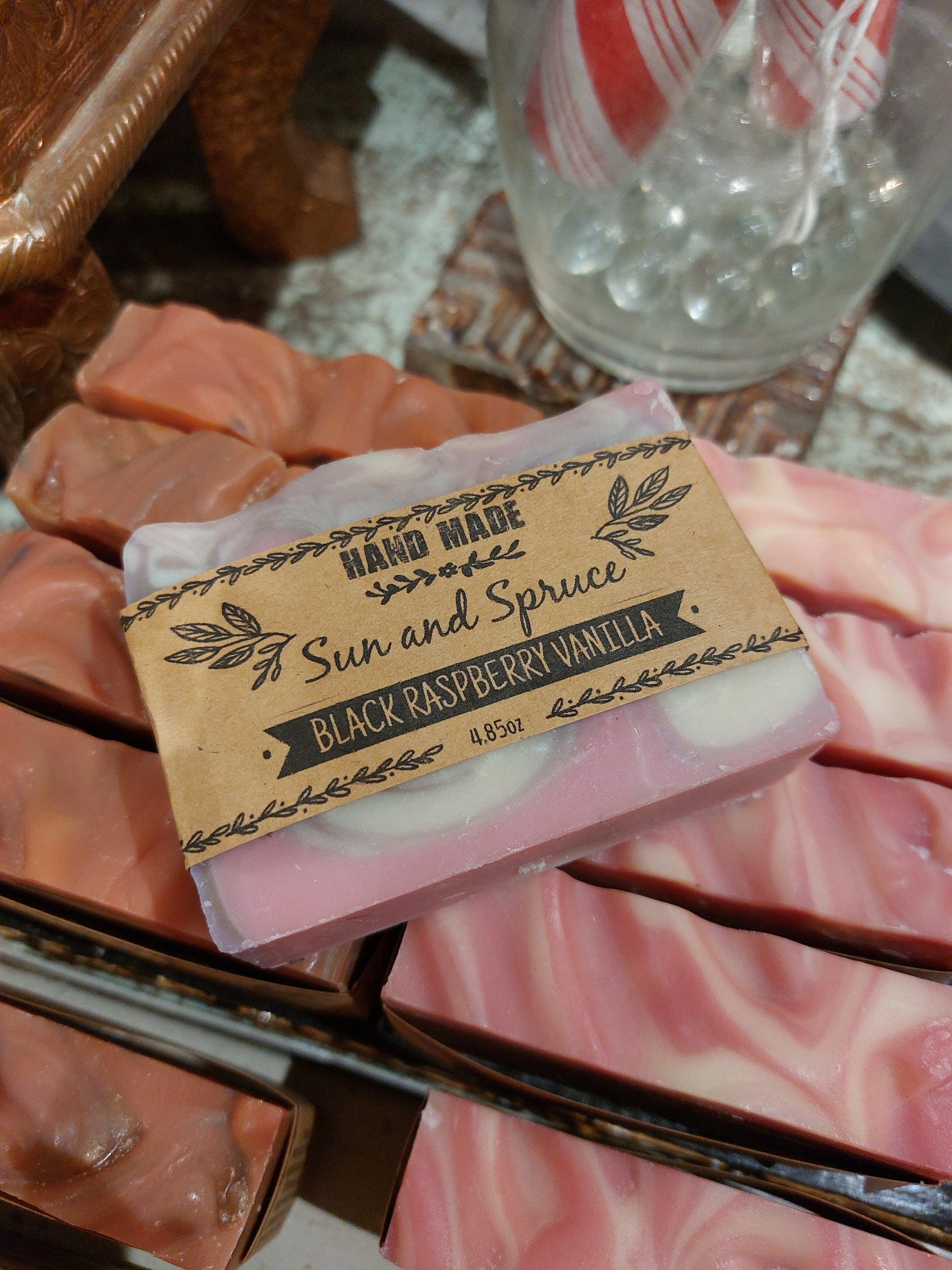 This soap is a customer favorite! It is a rich blend of blackberries & raspberries, with floral hints, a little musk & warm vanilla!