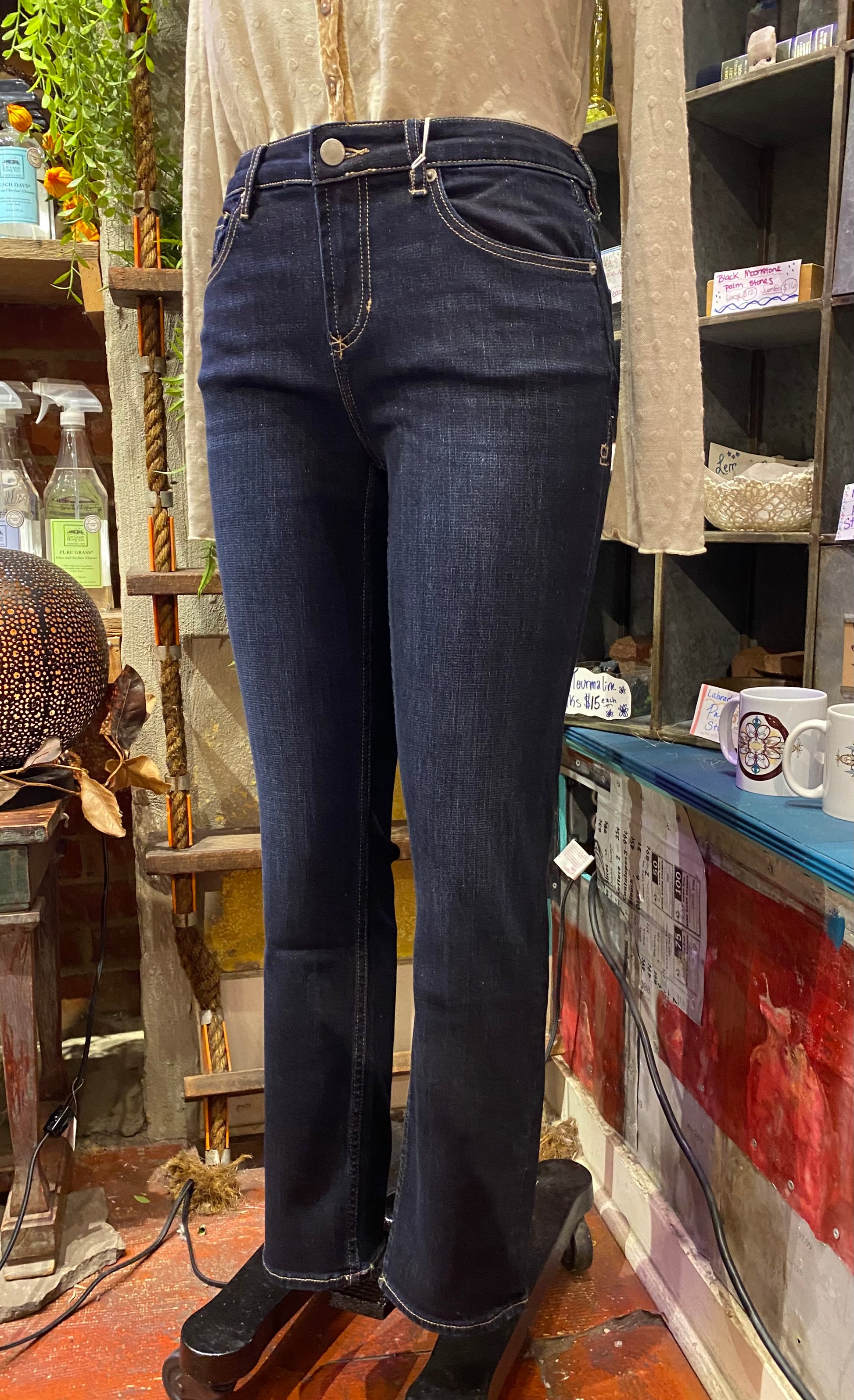 Discover the Blaire Straight Leg Jean in Daring Indigo, crafted with a subtle sparkle deep indigo denim for a timeless style. Its straight-leg fit offers a flattering silhouette that moves effortlessly with you, while practical pockets add everyday convenience. Elevate your wardrobe with these versatile jeans that balance classic design and modern flair.