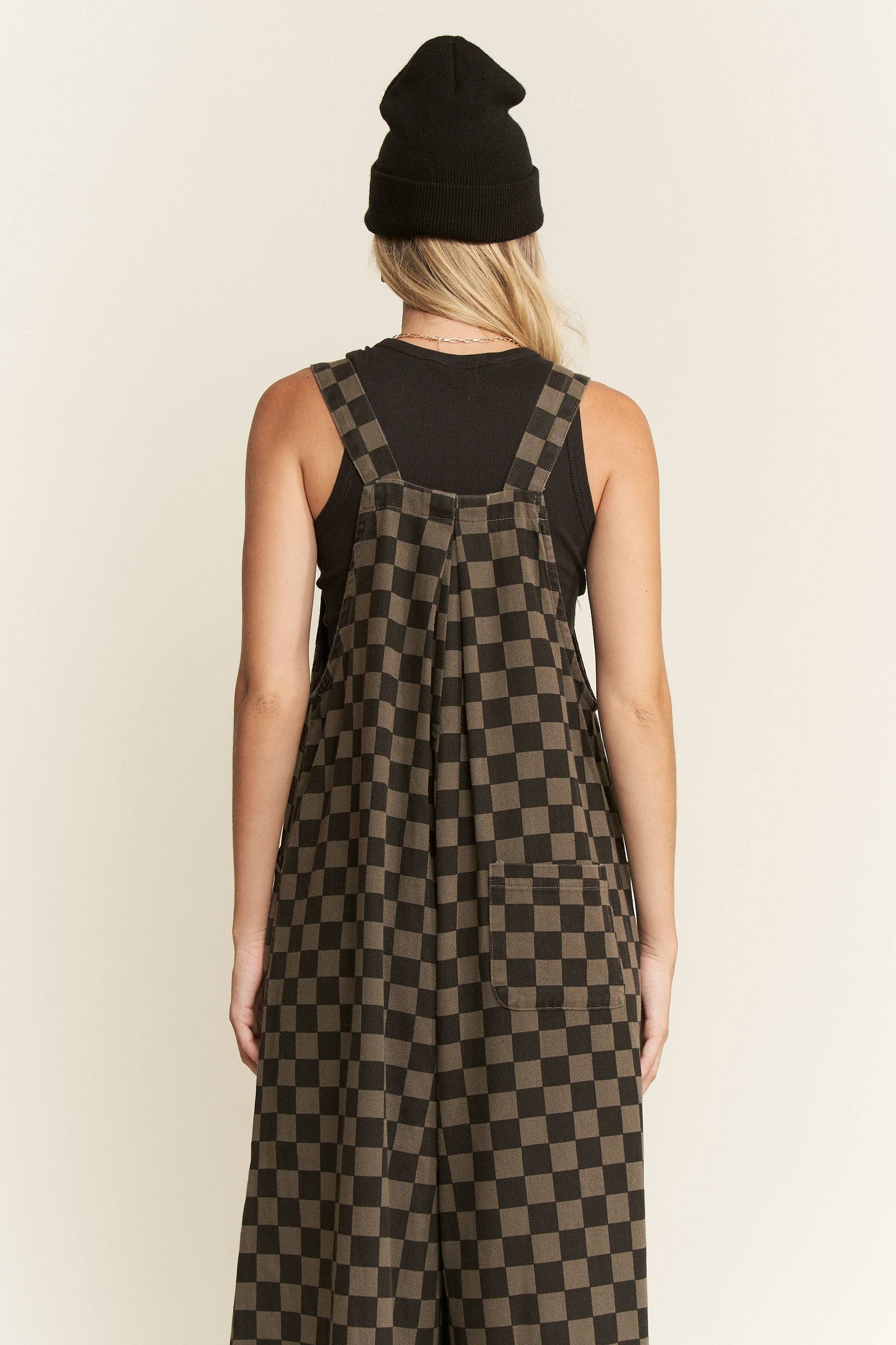 Curve Wide-Leg Overalls - Charcoal/Black Checker