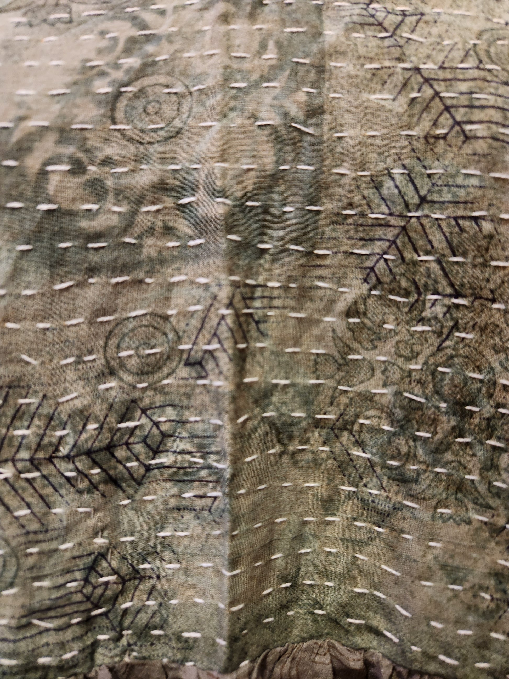 - The saris are sewn together and extend the life of each design. Imperfections should be celebrated.