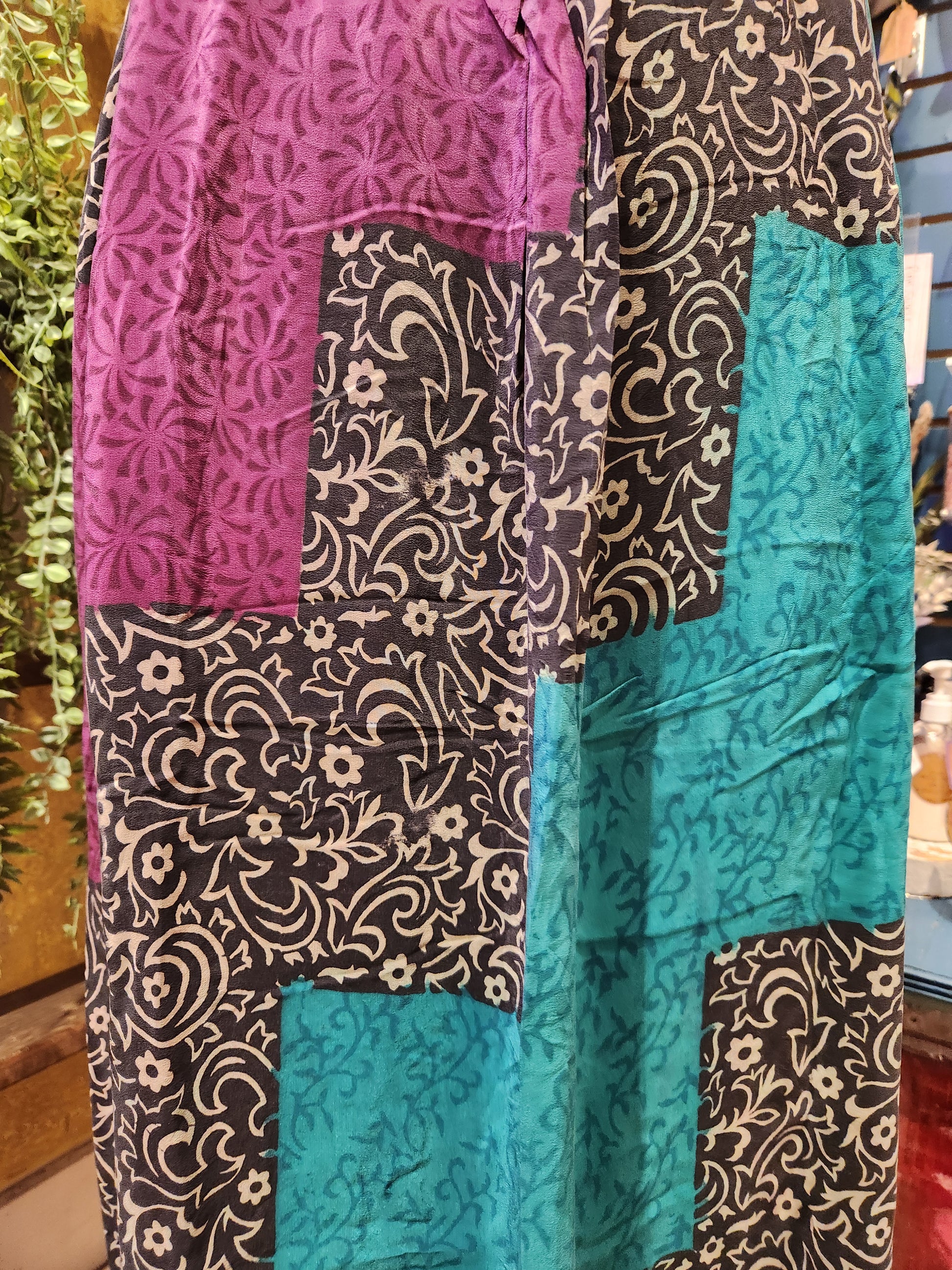 - The saris are sewn together and extend the life of each design. Imperfections should be celebrated.
