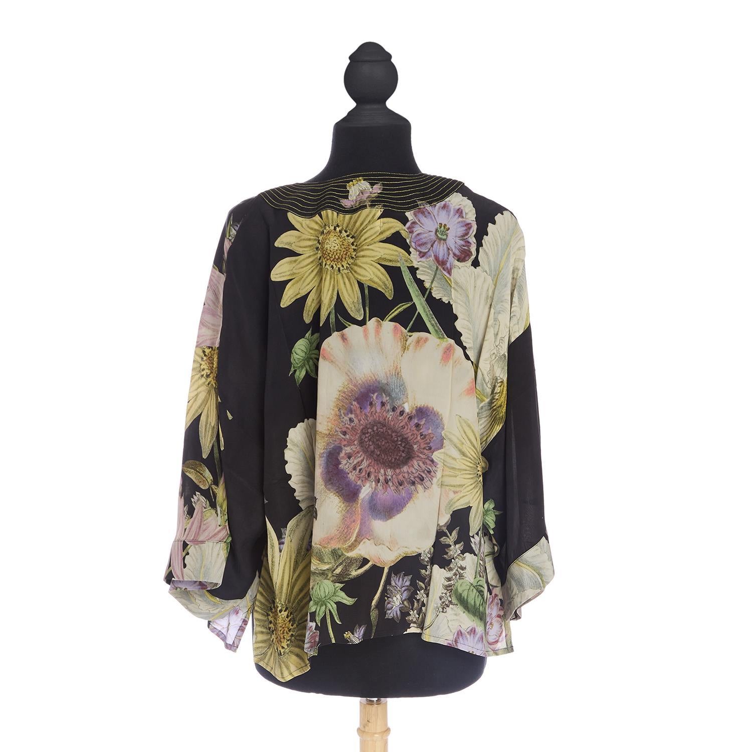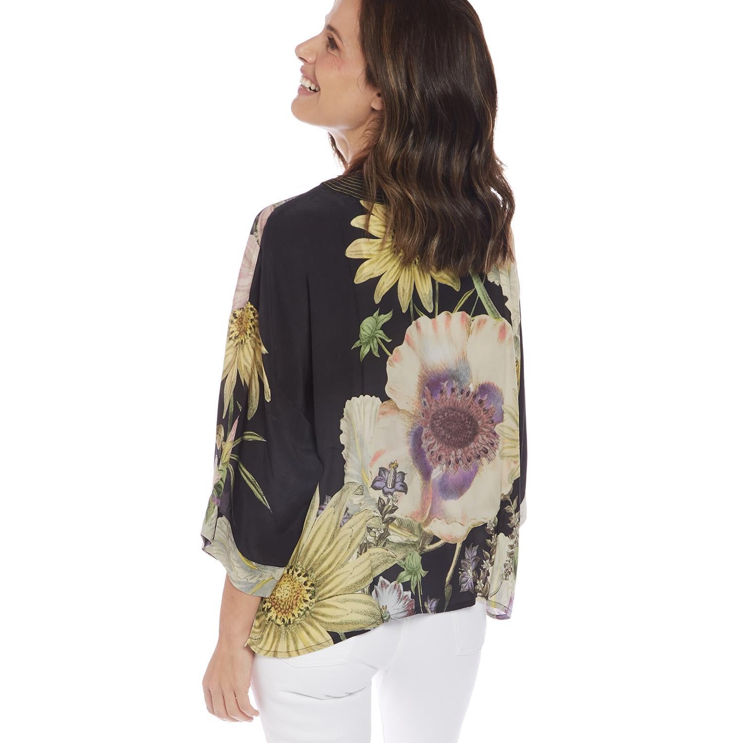 Daisy Print Black Short Kimono
