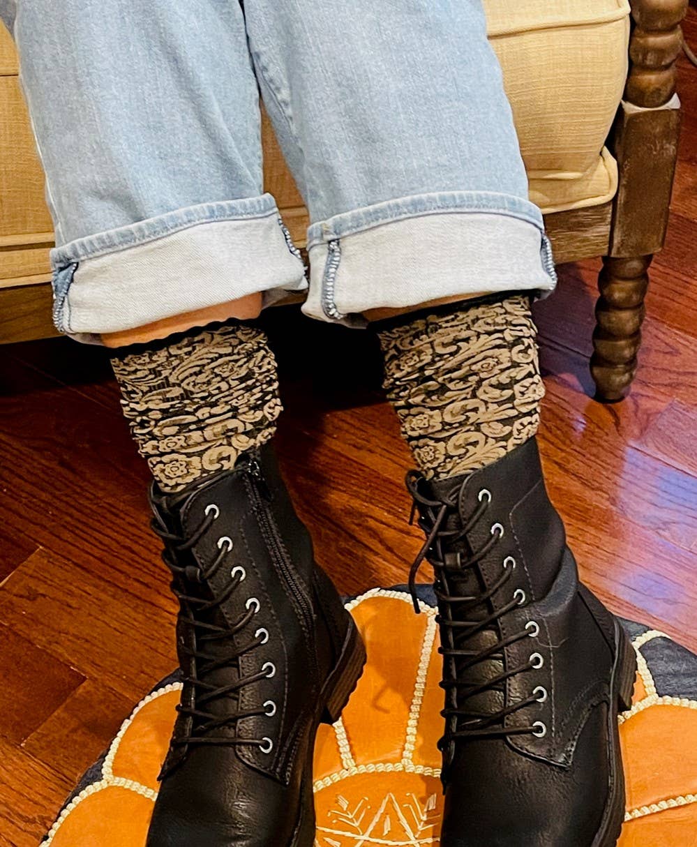 The opaque knee-hi feels smooth and stays put, the attached ankle sock is cushioned and comfy.ย