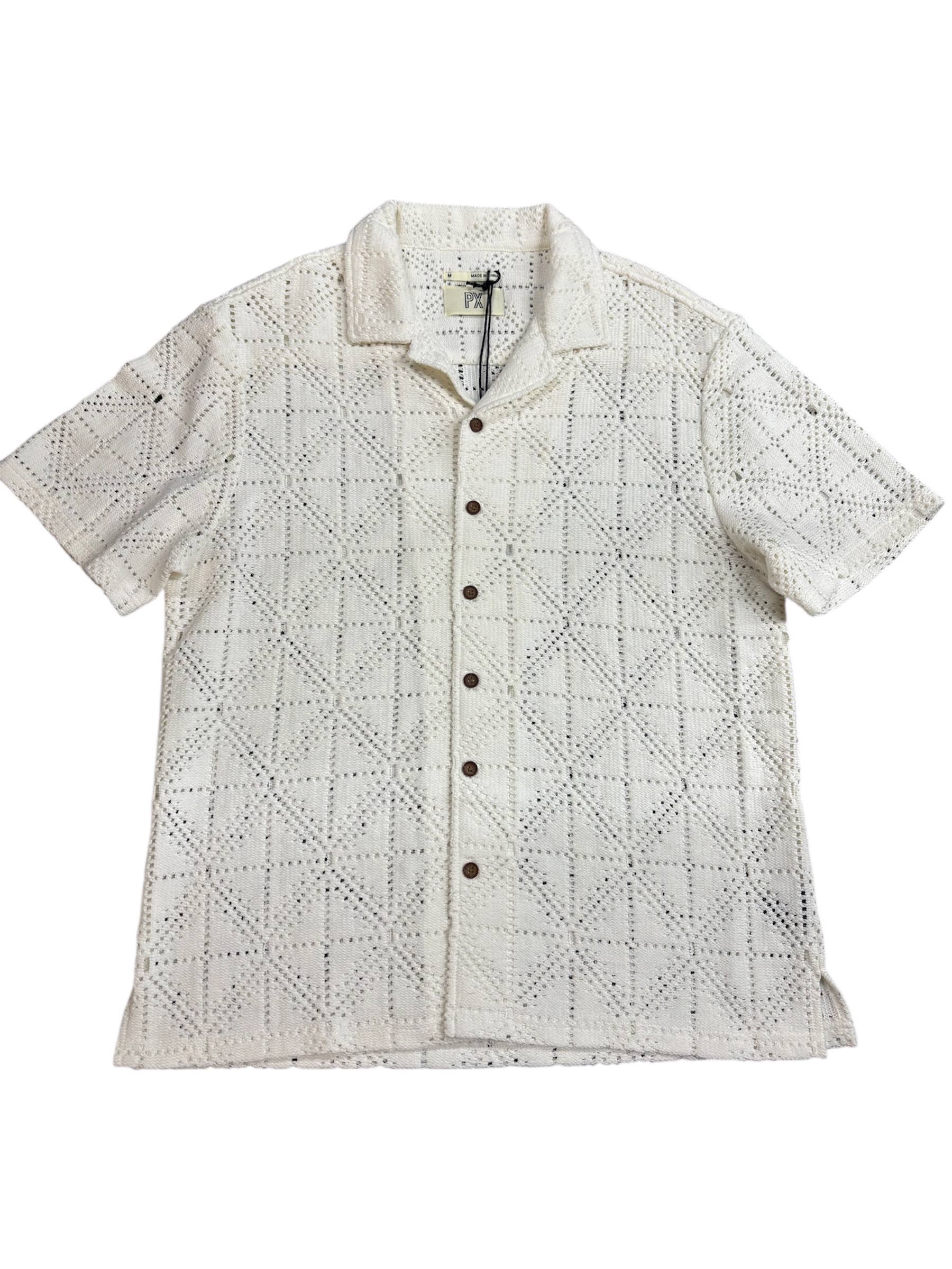 Dax Geometric Crochet Short Sleeve Shirt - Cream