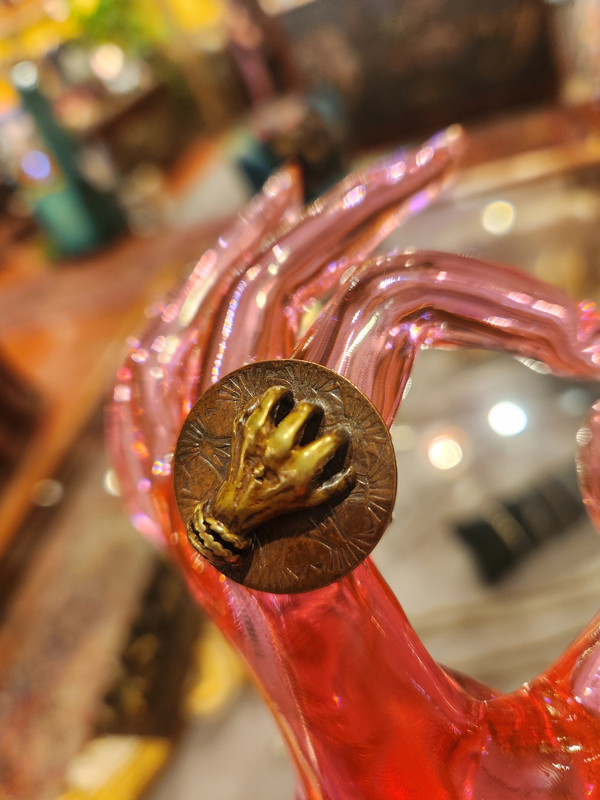 Make a bold gesture with this striking Dimensional Hand Ring, an artistic piece crafted from reclaimed and repurposed vintage metal. Featuring a captivating 3-dimensional hand figure on top of a coin-shaped form, this ring transforms forgotten materials into sculpture. A wearable work of art that transforms forgotten materials into something truly magical.