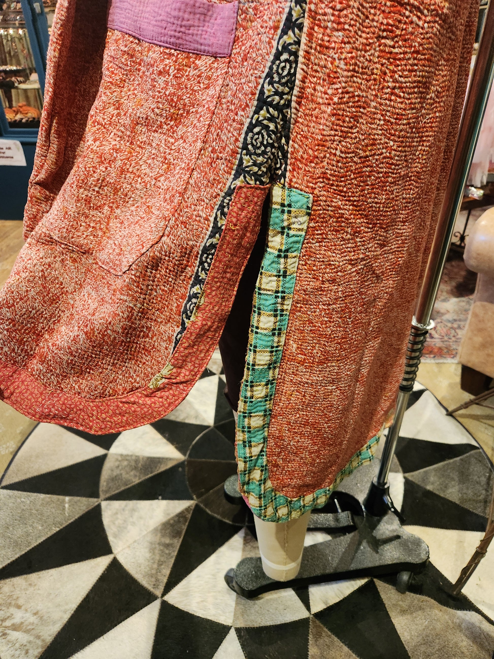 Disclosure: Our vintage styles have lived a full life before becoming the designs in our shop. Fabrics may have small threads or holes in the layers. Color inconsistency or small stains may be present. The saris are sewn together and extend the life of each design. Imperfections should be celebrated.