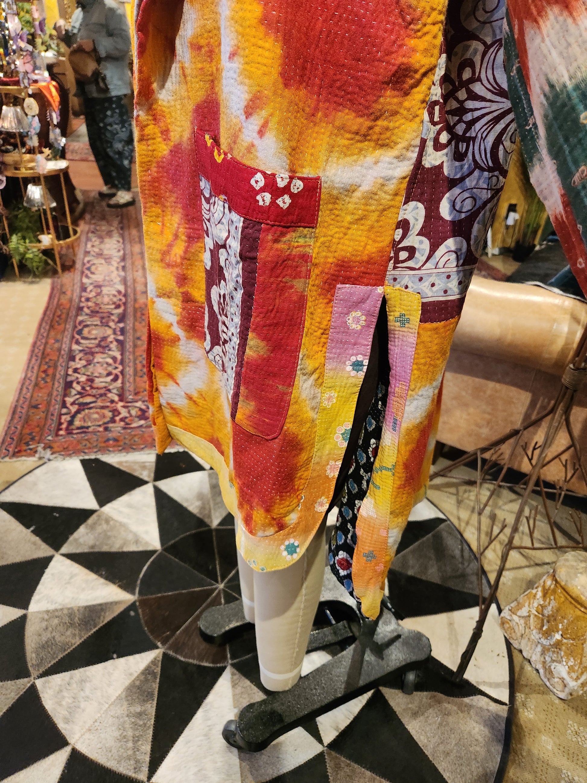 Disclosure: Our vintage styles have lived a full life before becoming the designs in our shop. Fabrics may have small threads or holes in the layers. Color inconsistency or small stains may be present. The saris are sewn together and extend the life of each design. Imperfections should be celebrated.