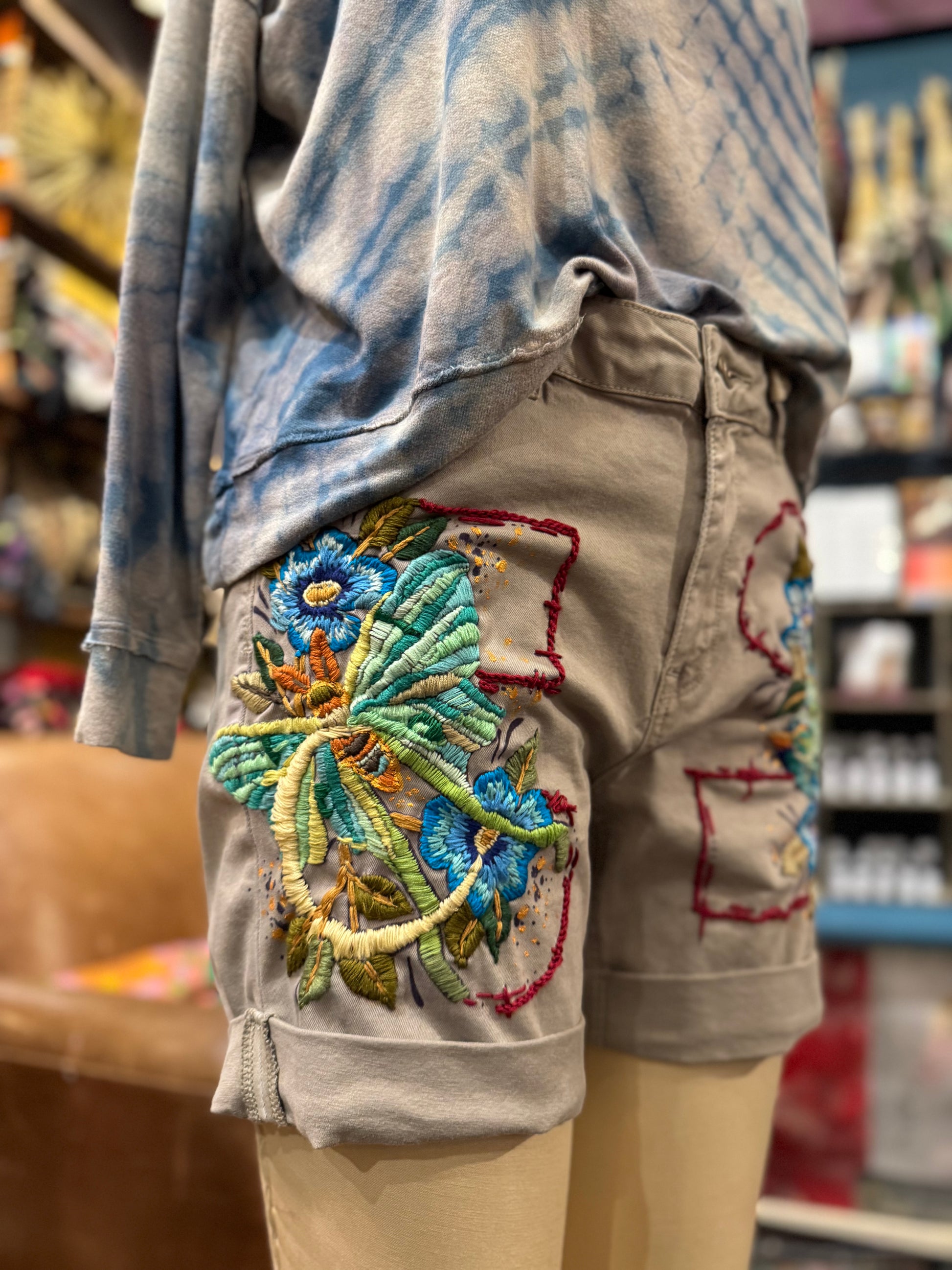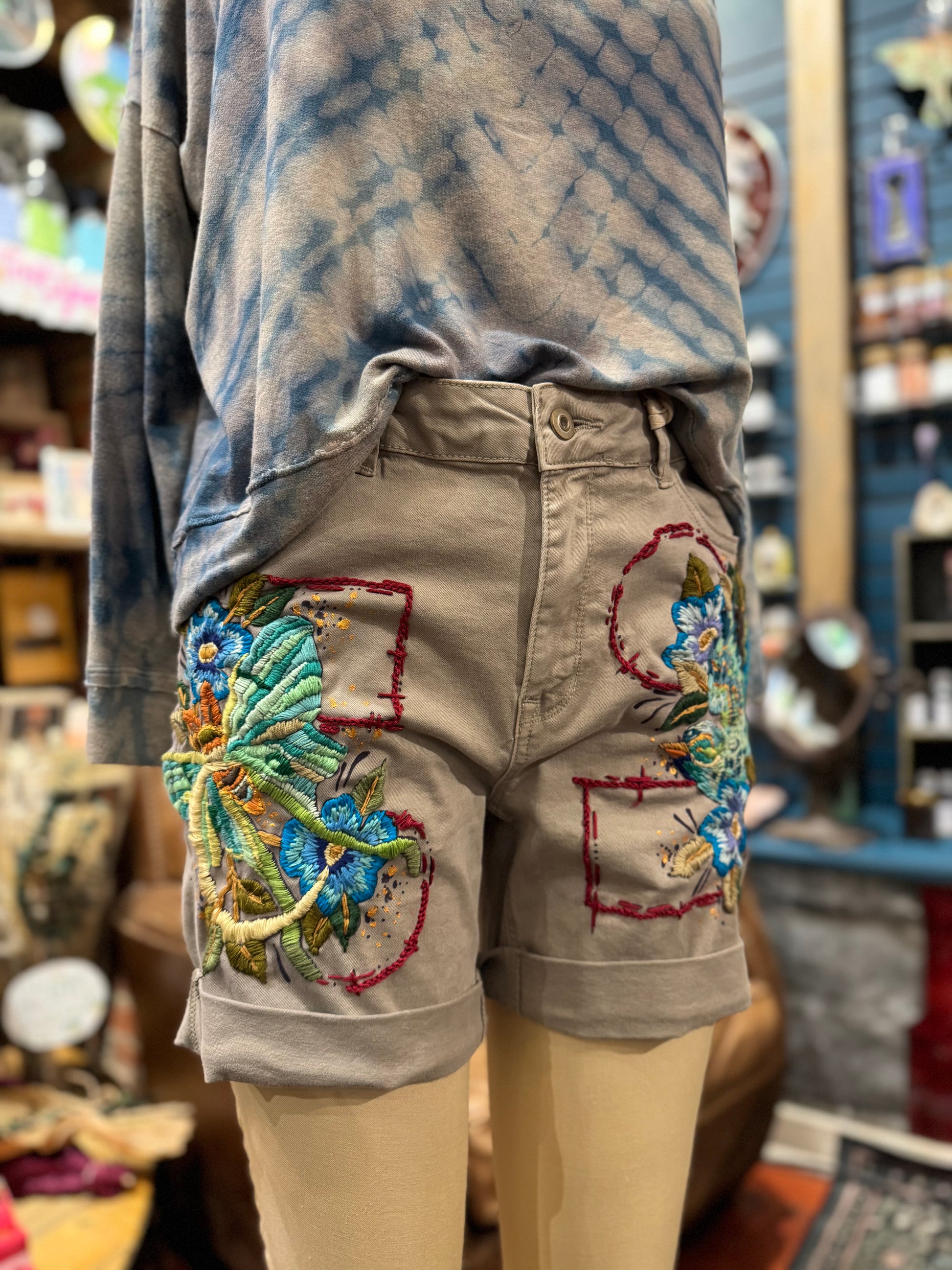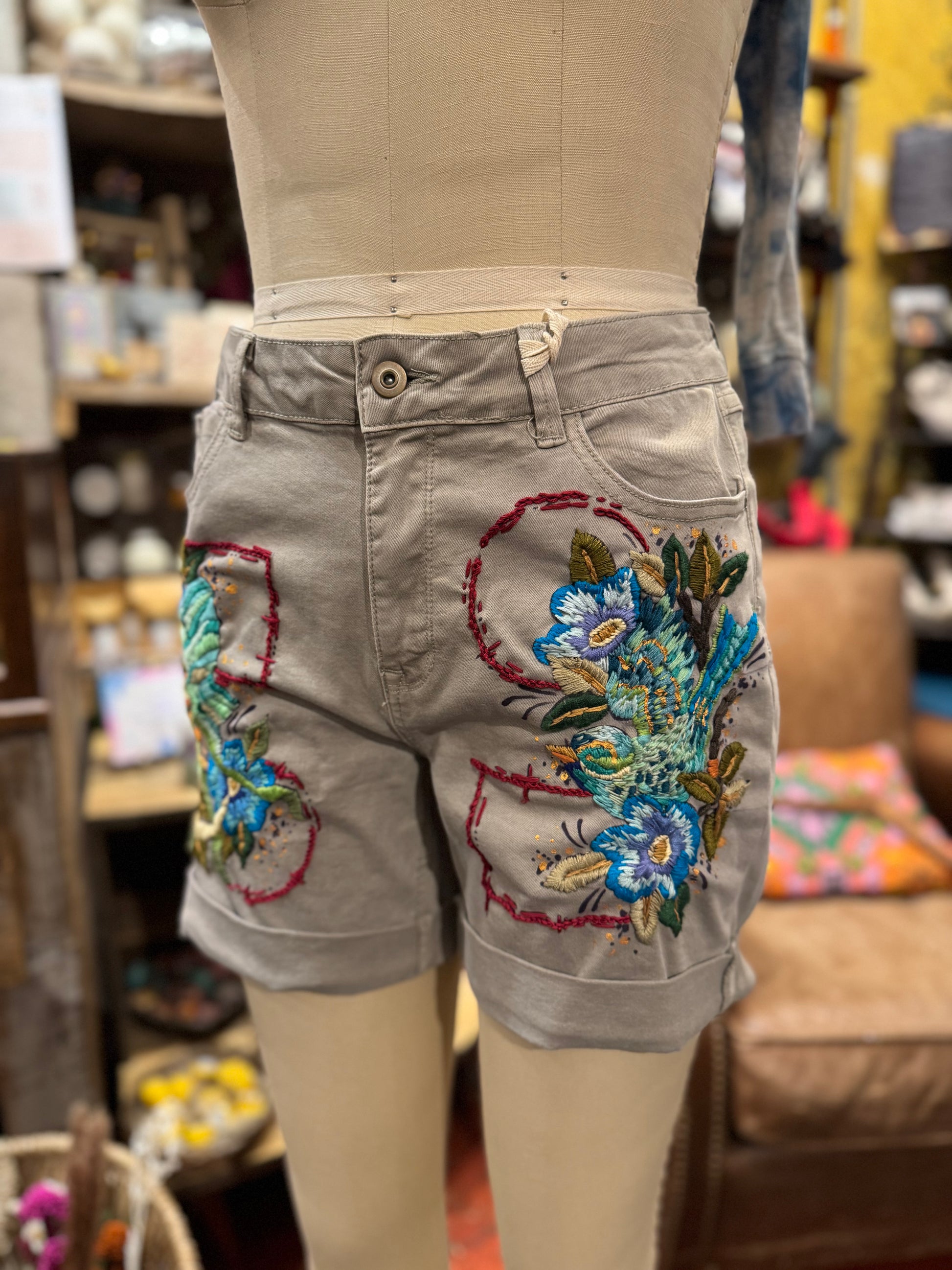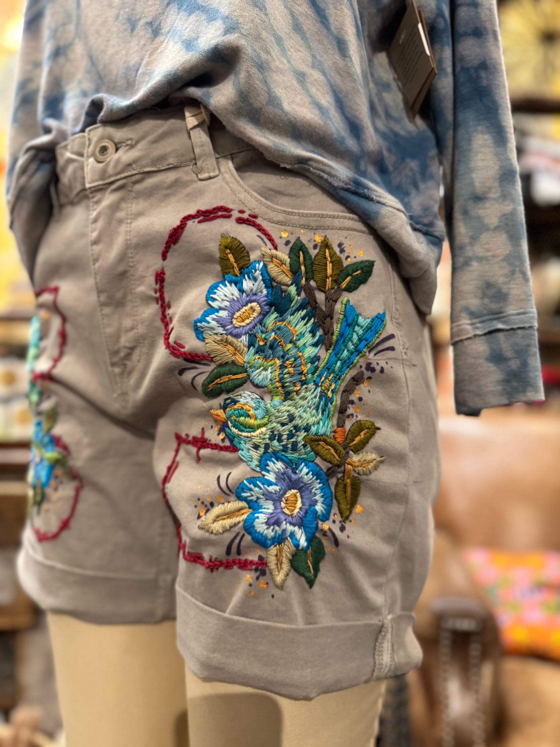 Embroidered Bird & Moth Charlie B Shorts -Debi Samuels*