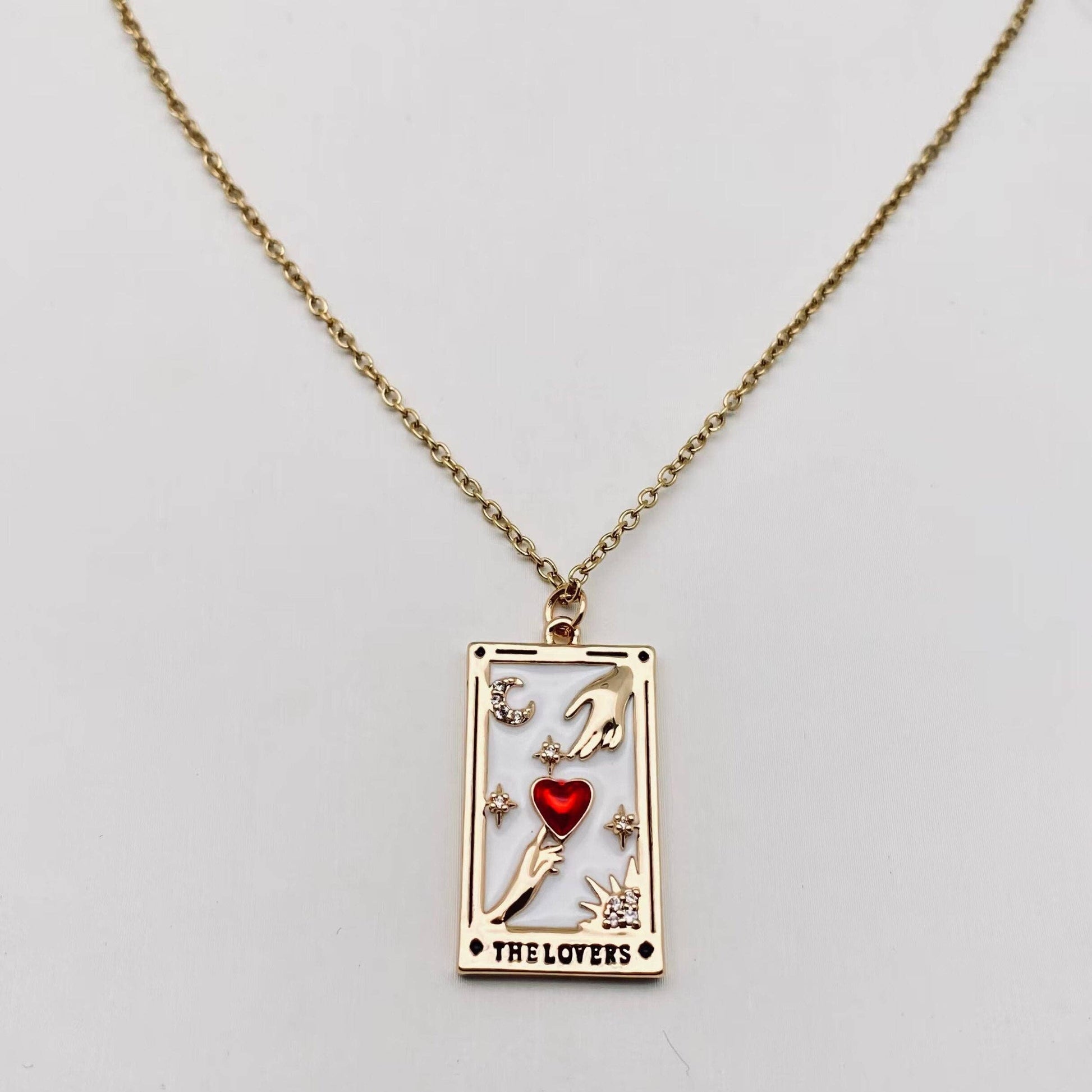 Enamel Tarot Inlay Cubic Zirconia Pendant Necklace - LOVERS