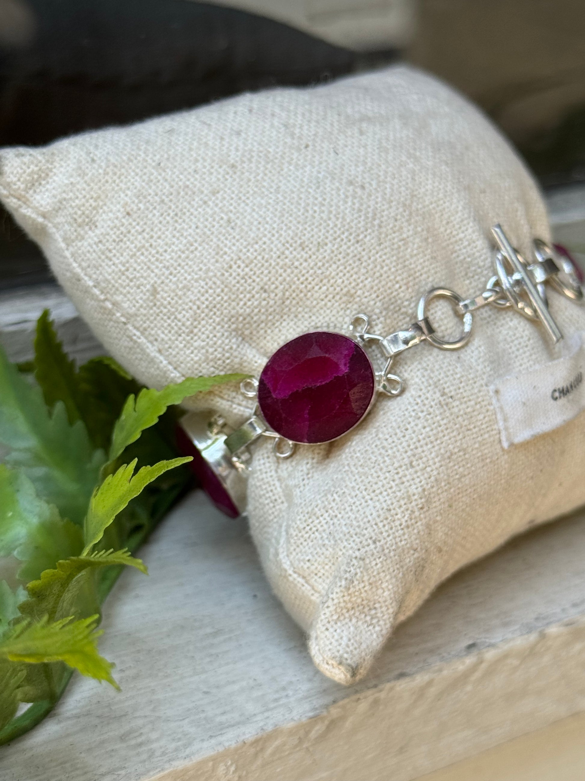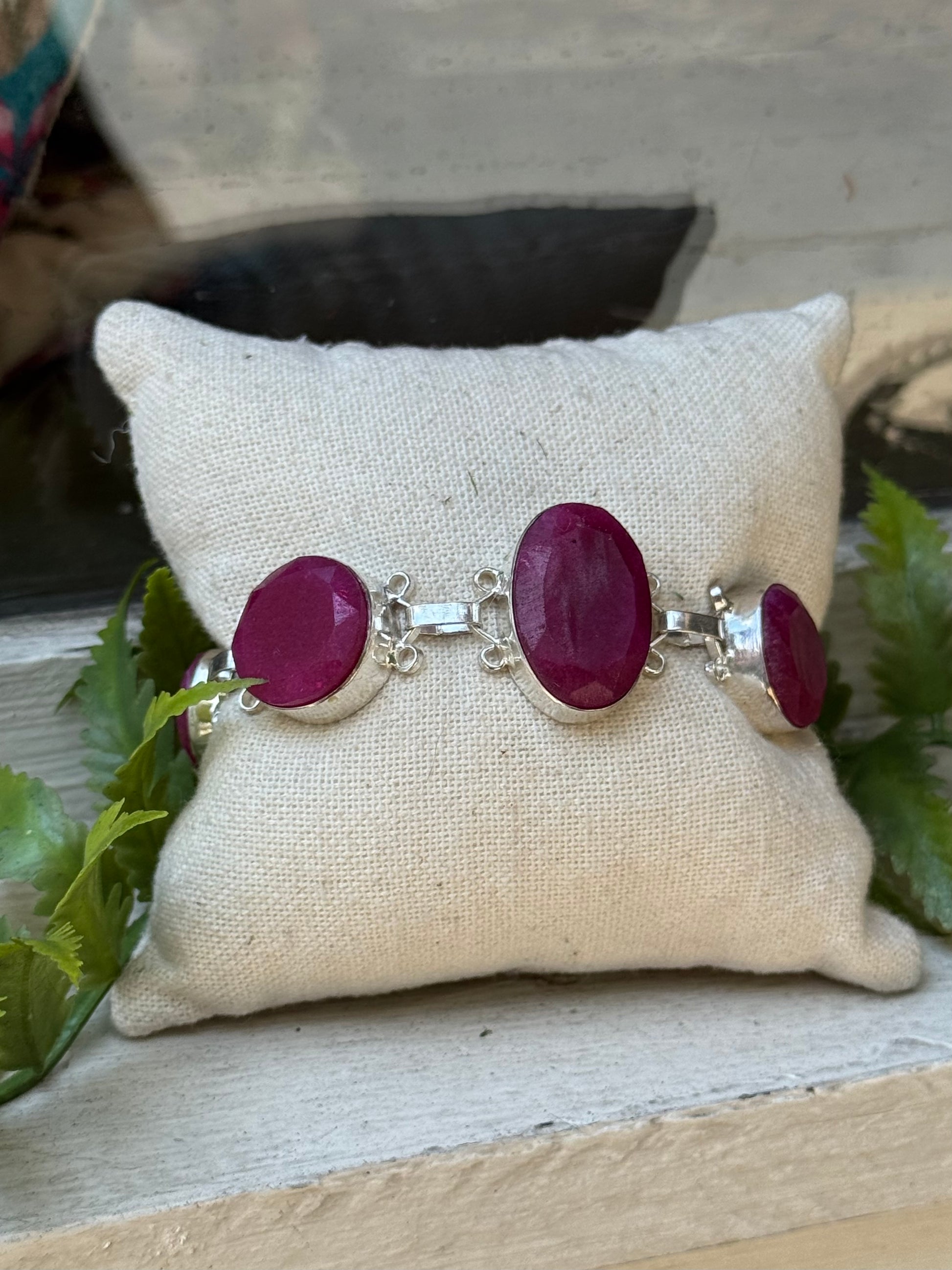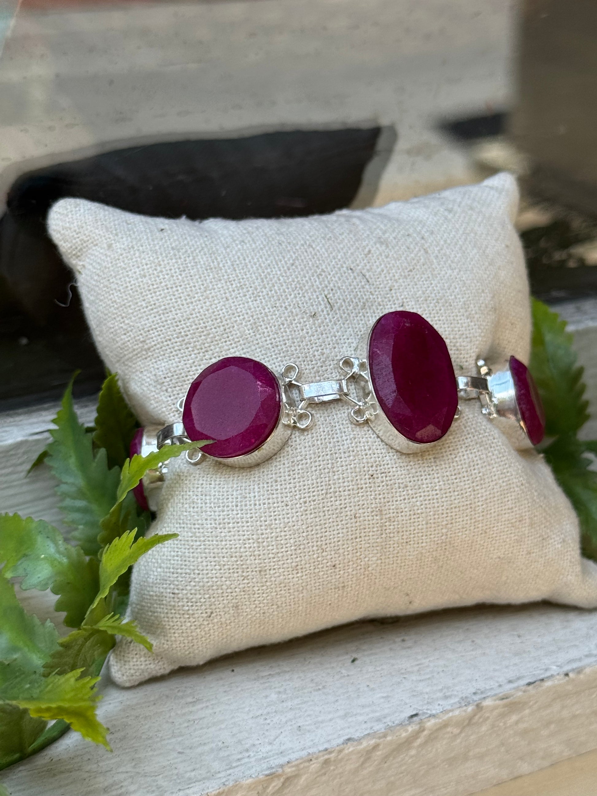 Elevate your style with this Dyed Ruby Silver Bracelet, designed to capture the rich allure of rubies without the high cost. Crafted with shimmering silver and vibrant faux ruby stones, it offers a luxurious look perfect for any occasion. Lightweight and comfortable, this bracelet adds a touch of elegance and bold color to your outfit, making it an irresistible accessory for those who want sophistication without compromise.