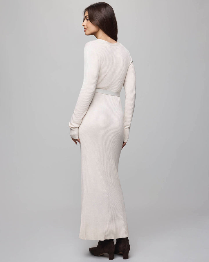 Cozy meets effortlessly elevated in the Georgie Cashblend Button Down Dress. Crafted from our signature Cashblend fabric - a soft blend with a hint of cashmere - this long, ribbed silhouette features a button-down front, flattering V-neckline, and removable tie belt to define the waist. Full-length sleeves and a maxi hem make it the perfect all-in-one look for transitional weather or cooler months.