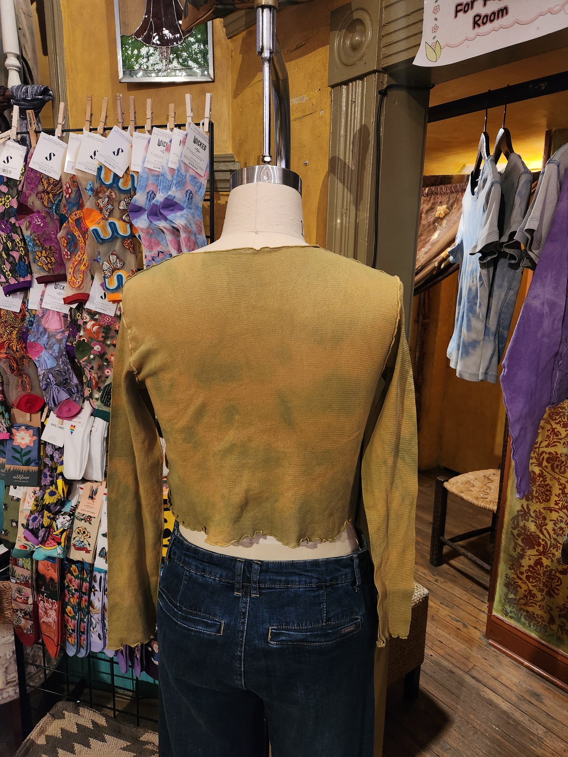 Hand Dyed 'Cutloose' Mesh Top - Ocre