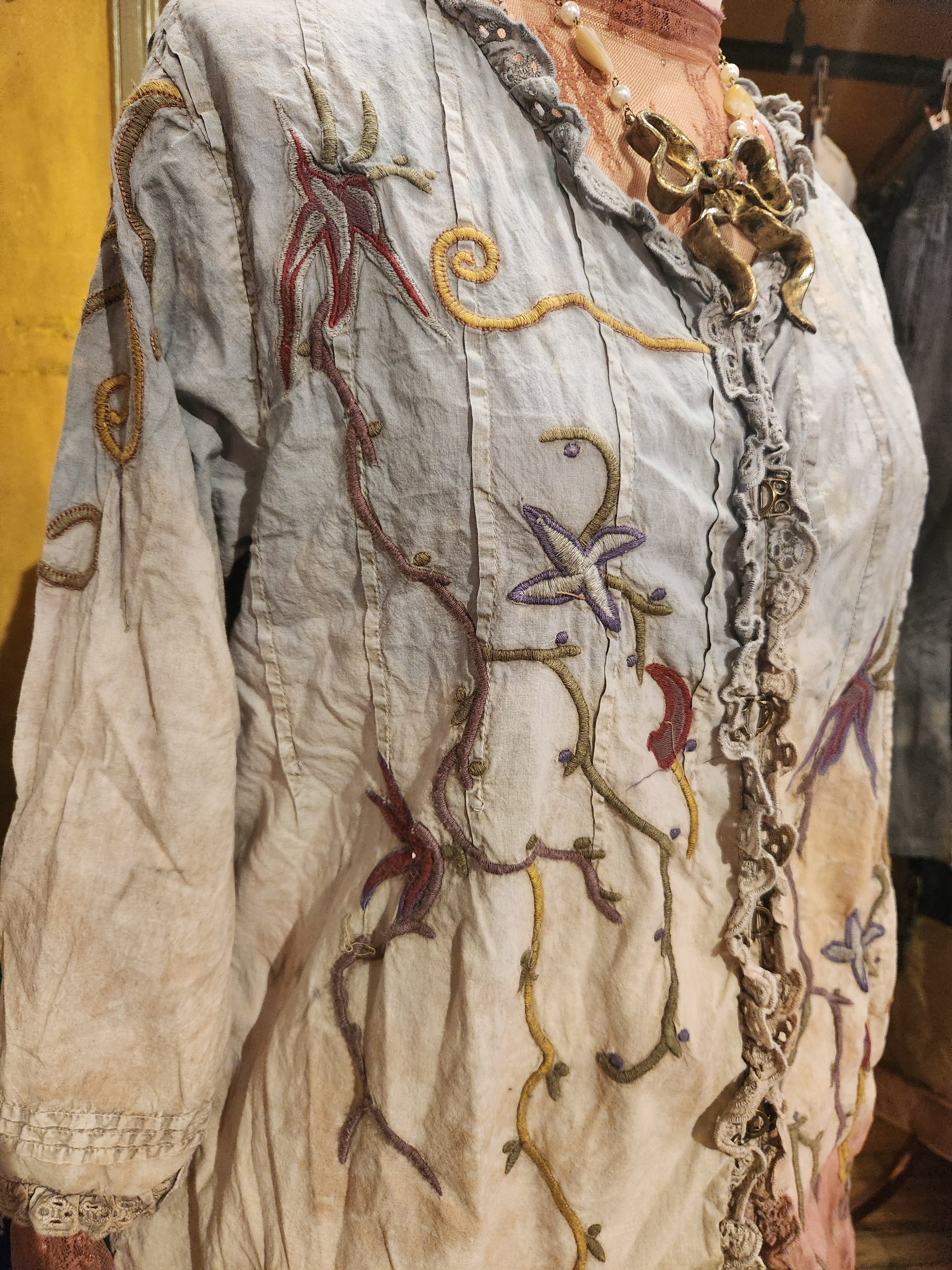 Hand dyed 'Paper Lace" duster jacket with embroidery details, size M