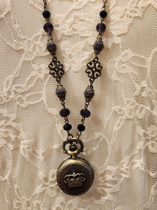 Victorian Style Pocket Watch Necklace | Crown Emblem