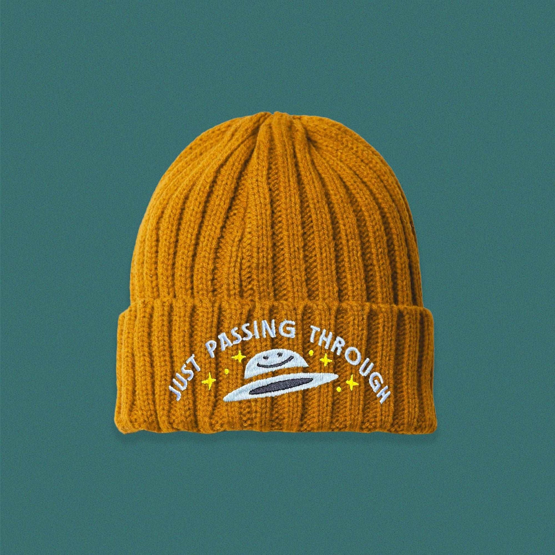 Embroidered directly onto a super soft corduroy cable knit cuffed beanie, that's guaranteed to become your new favorite.