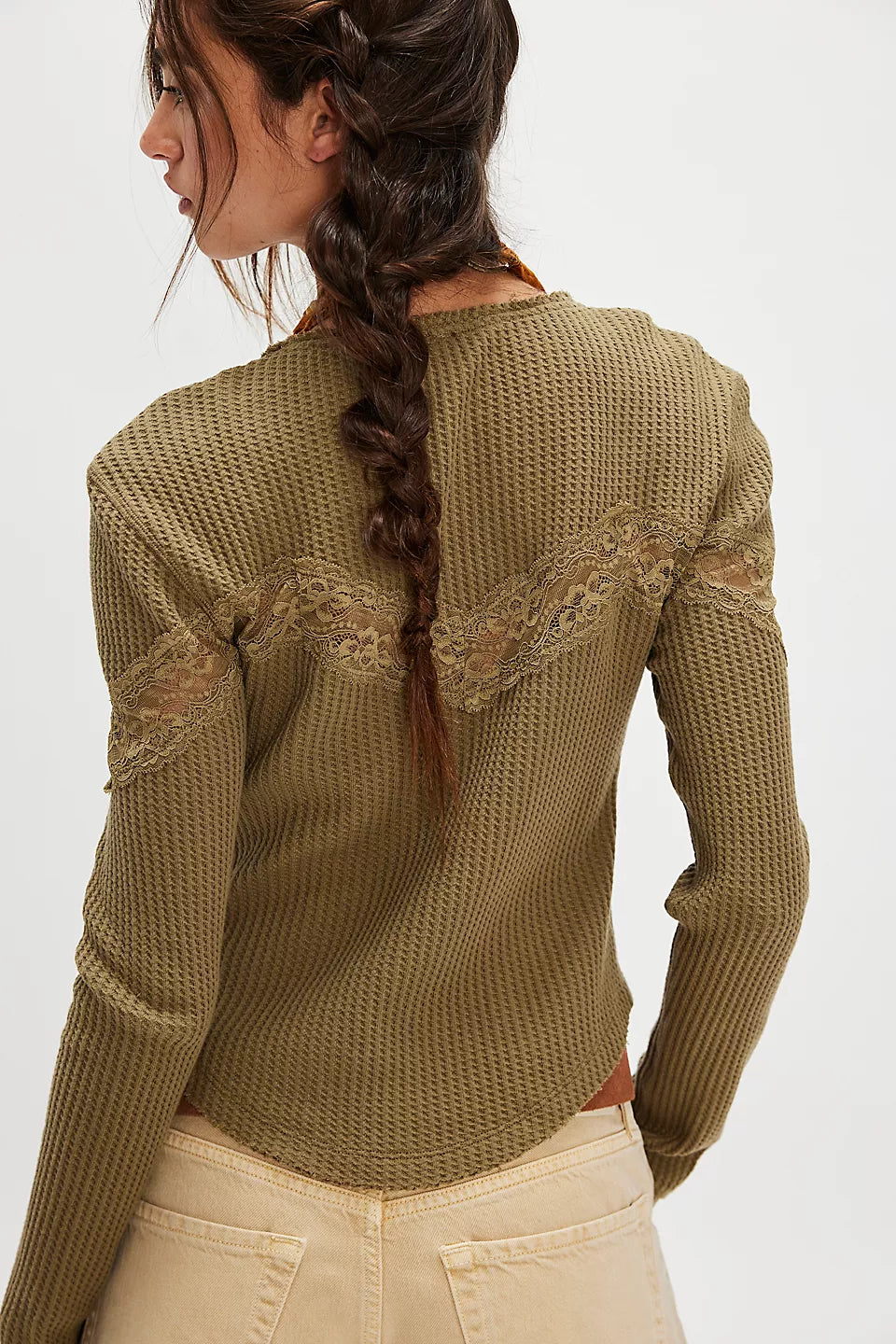 This button-down waffle-knit cardigan is enhanced with delicate lace trims, giving it a stylish and feminine touch perfect for any celebration.