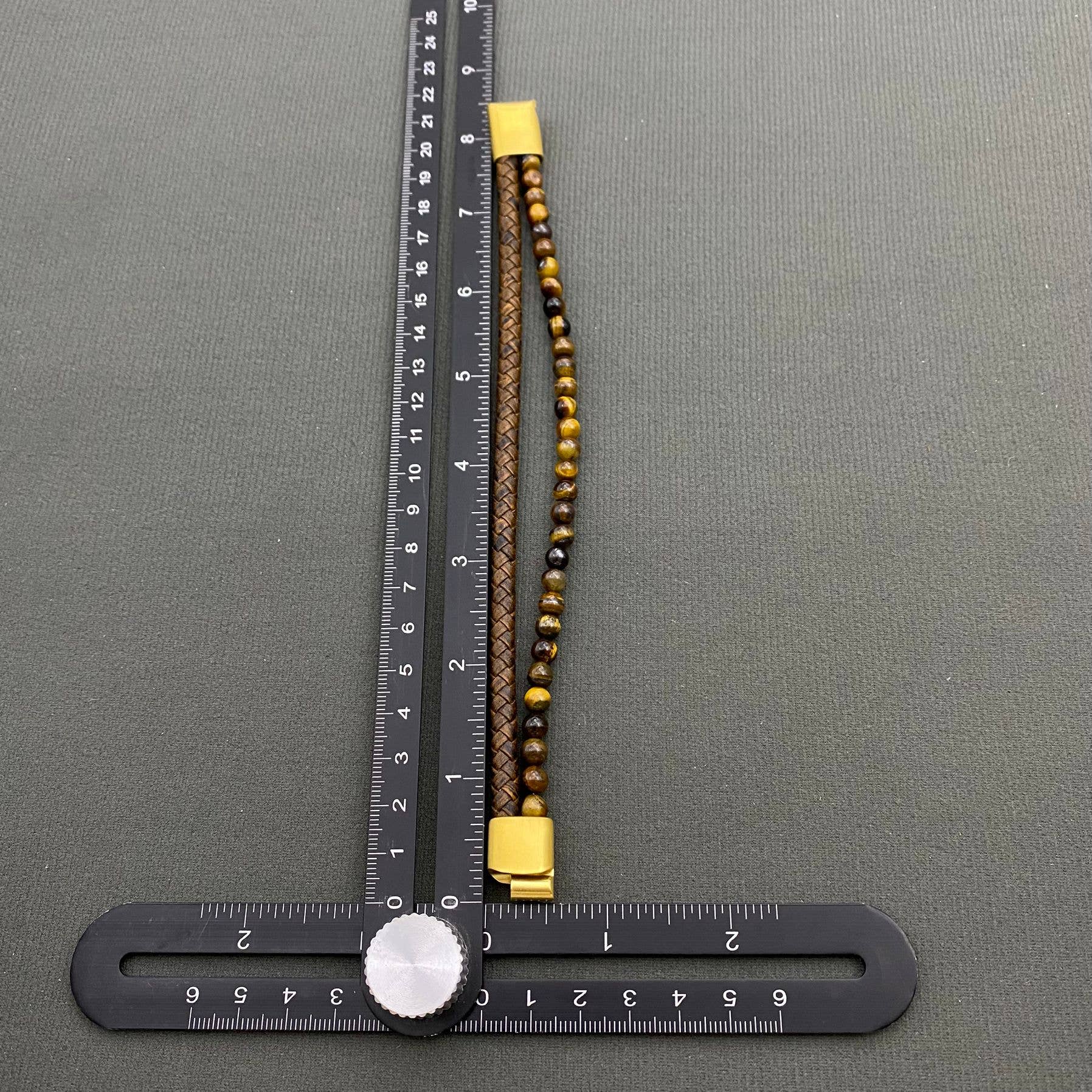 Men's Tiger Eye Stone Leather Double Layer Bracelet - MJ/BC