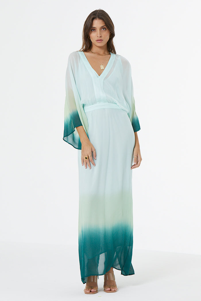 Ethereal and free—this flowing ombré maxi moves with you, from golden shores to moonlit soirées