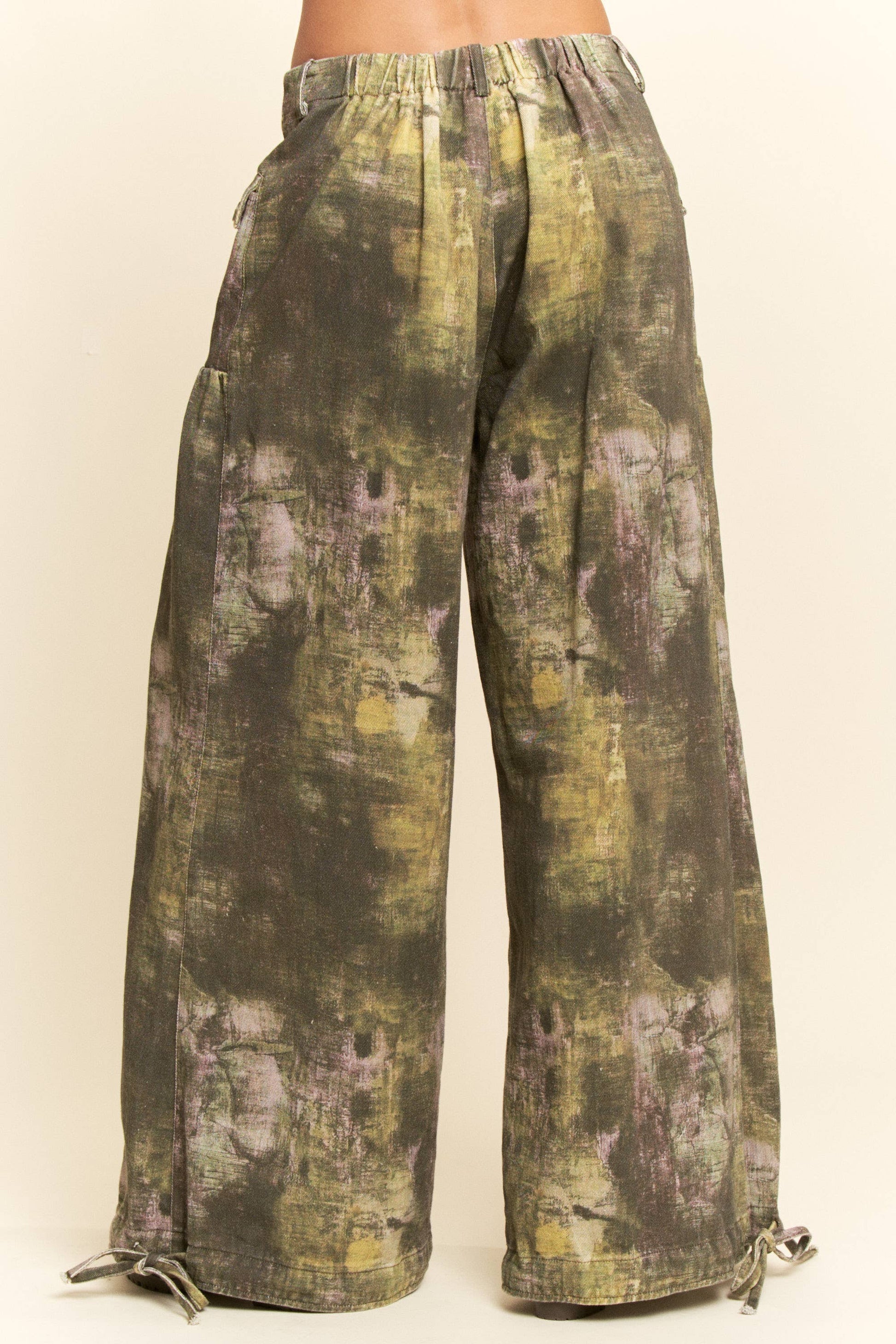 Curve tie-dyed printed denim wide opening adjustable balloon bottom detail mid-high waist pants