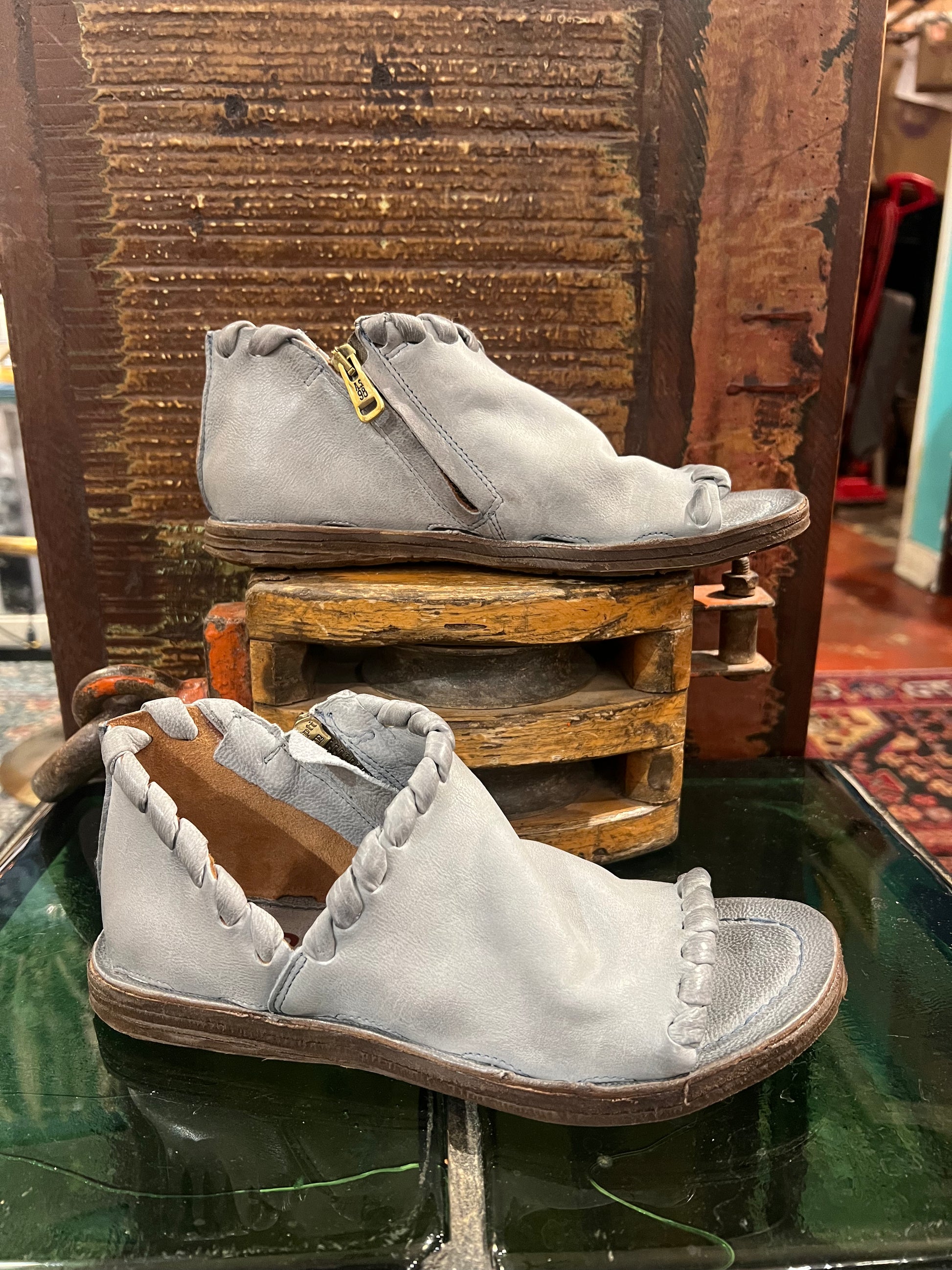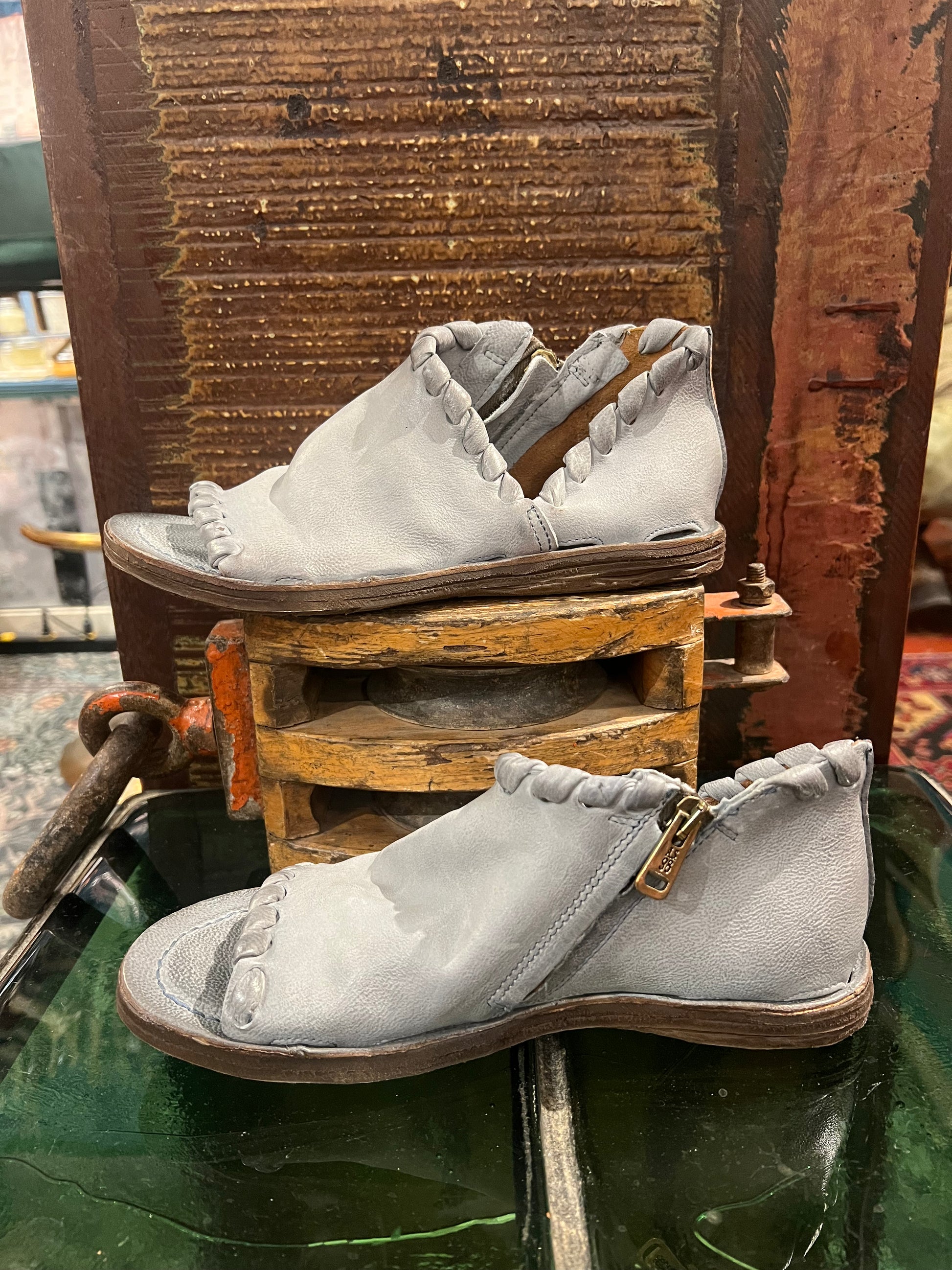 Make a bold statement with the Reinhart sandal from A.S.98. This chic peep-toe sandal features an asymmetrical leather upper with whipstitch trim and a convenient inside zipper. We love to wear this sandal with our favorite dresses this season.ย