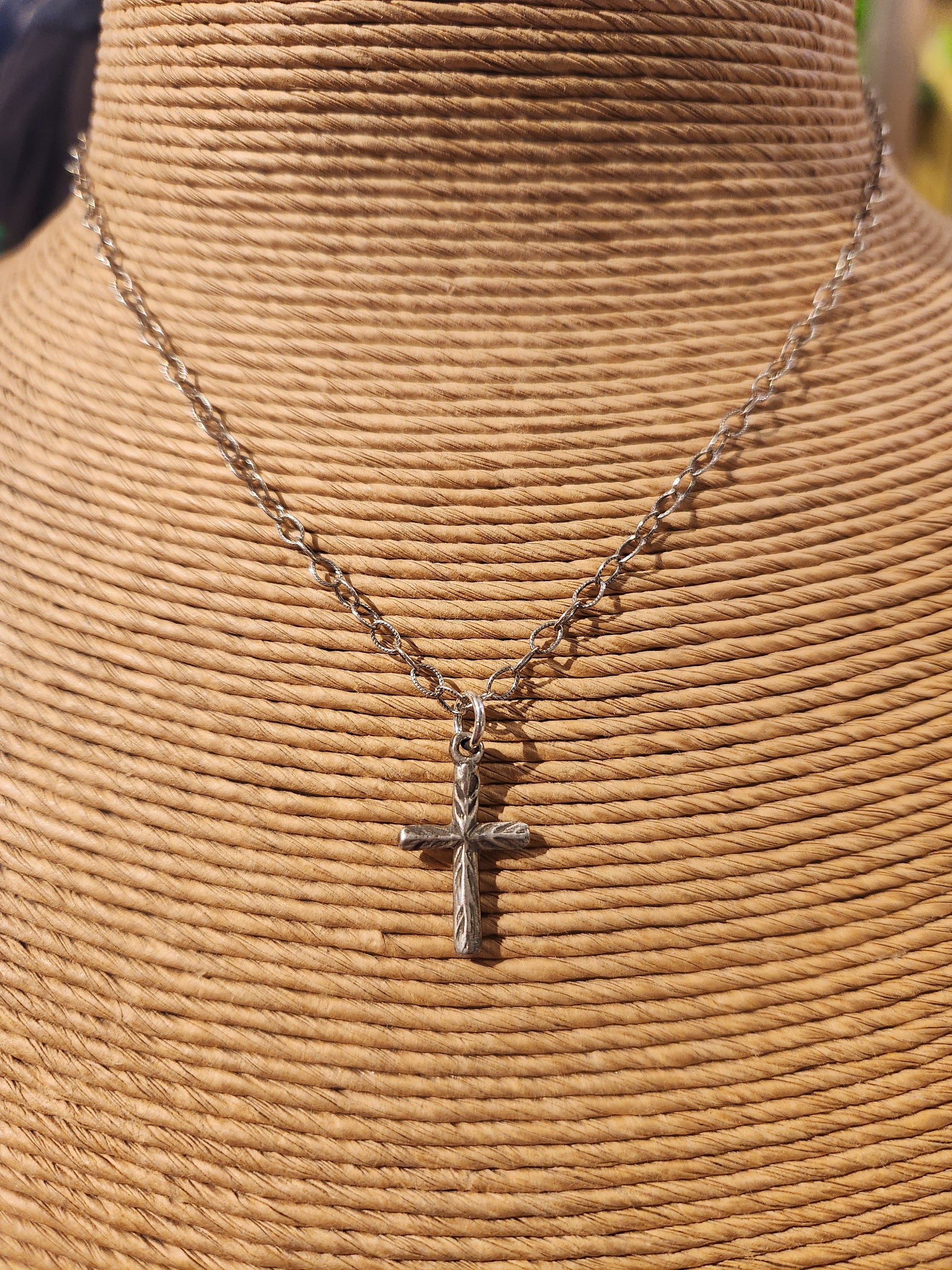 Elevate your everyday style with this striking sterling silver cross necklace. Crafted from genuine sterling silver, the delicate cross charm makes a confident statement while the simple chain keeps the design refreshingly minimalist. Perfect for layering or wearing solo, this timeless piece transitions effortlessly from casual to formal occasions. Handmade with Love by Cherri, of Laurel Lynn Designs.