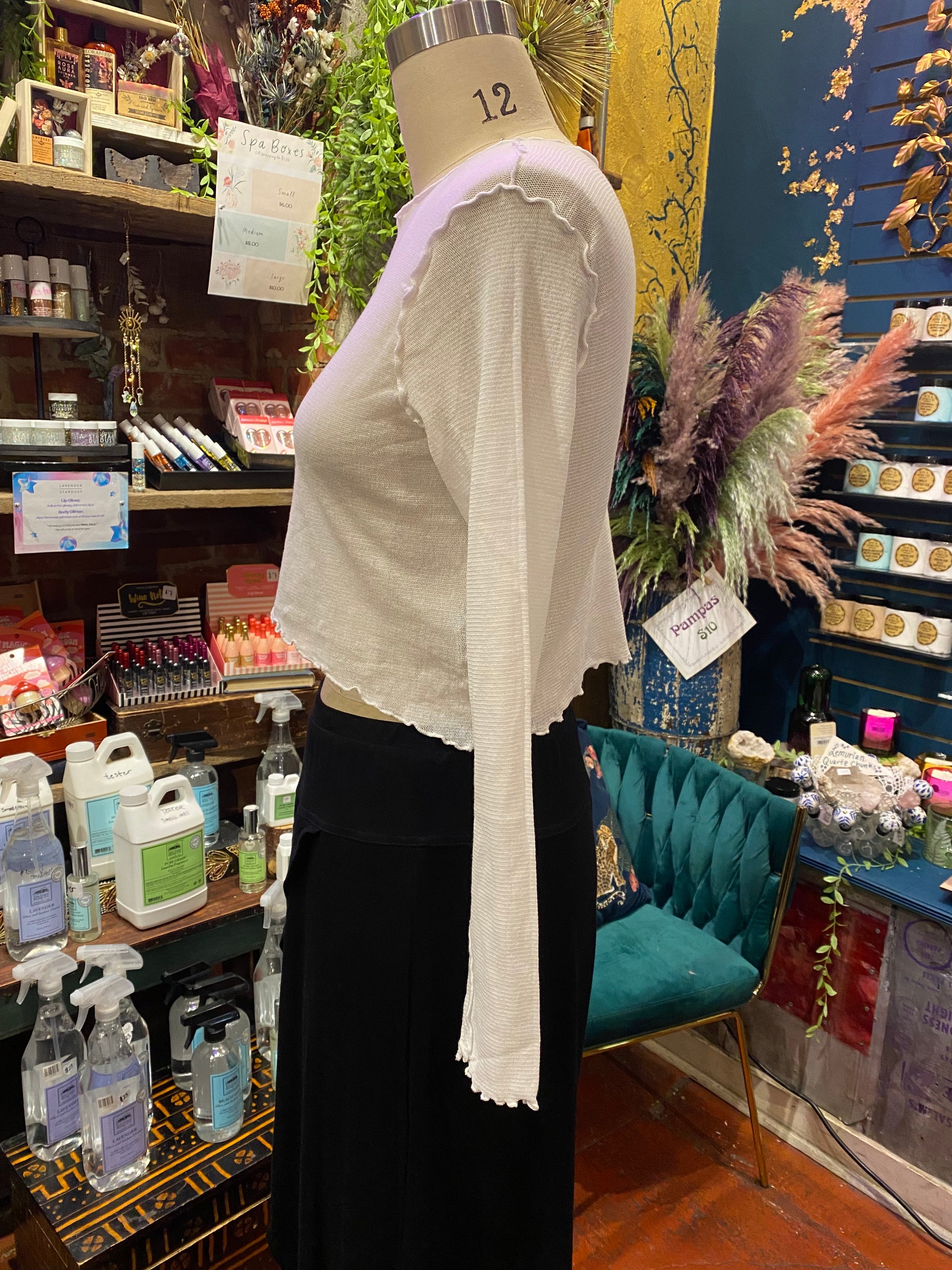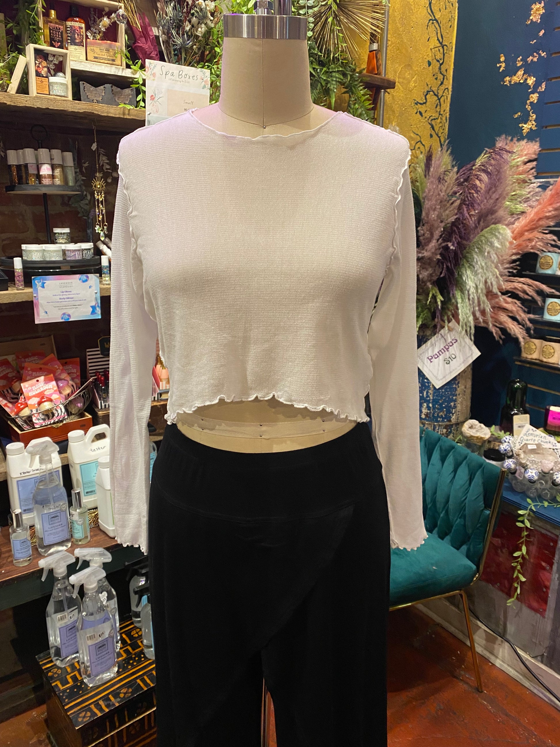 The Tulle Mesh Curved Crop Top in white is an effortlessly chic piece that combines elegance and edginess. Designed with a soft, semi-sheer tulle mesh fabric, it offers a delicate and airy feel while providing just the right amount of coverage. The curved hemline adds a flattering silhouette that enhances the natural shape of your body, making it both stylish and figure-defining. Perfect for layering over a bralette or pairing with high-waisted pants or skirts, this crop top exudes a modern, playful vibe with a touch of sophistication. Whether you're dressing up for a night out or adding a cool twist to your everyday look, this black mesh crop top is a versatile wardrobe essential.