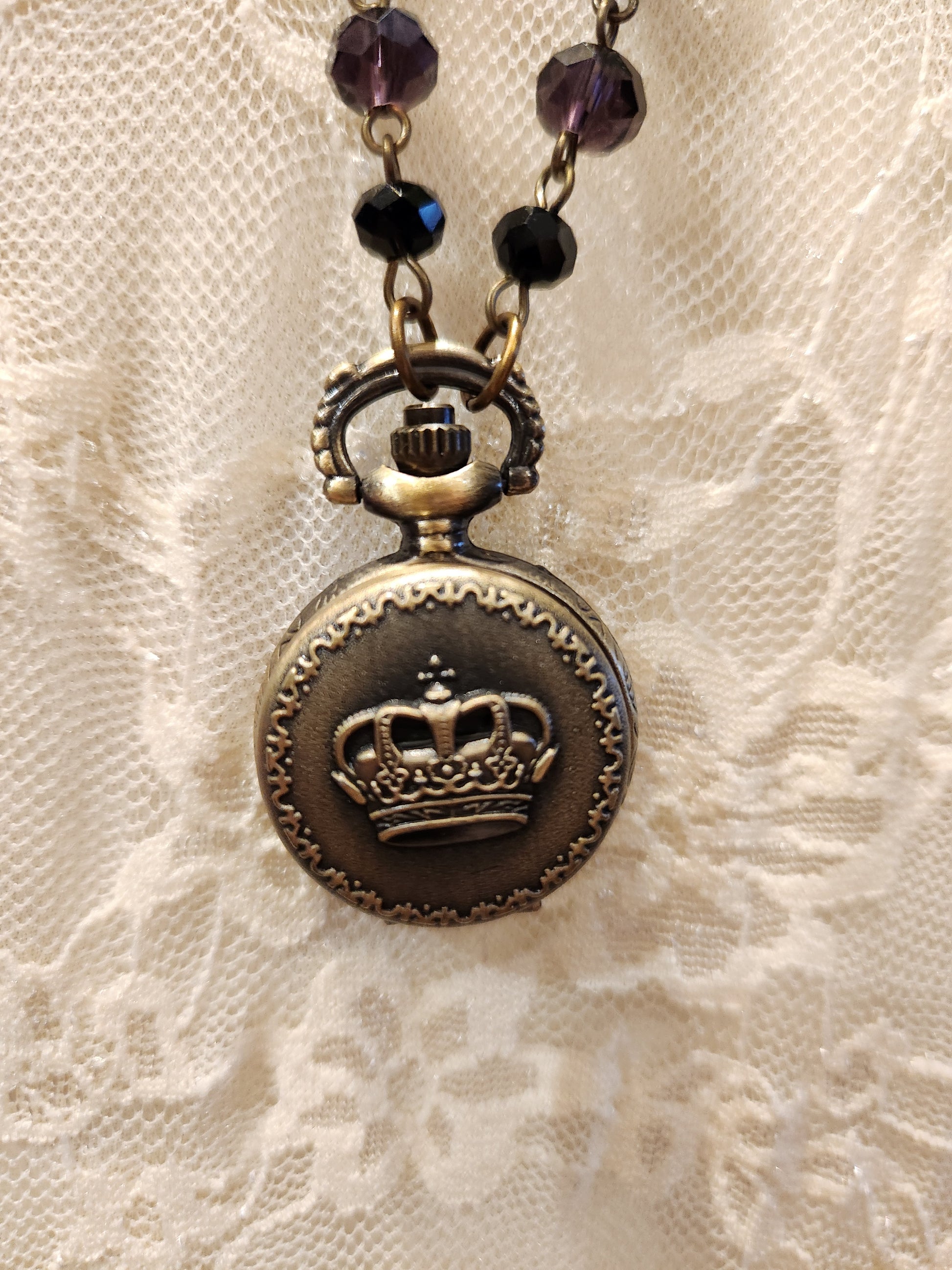 Victorian Style Pocket Watch Necklace | Crown Emblem