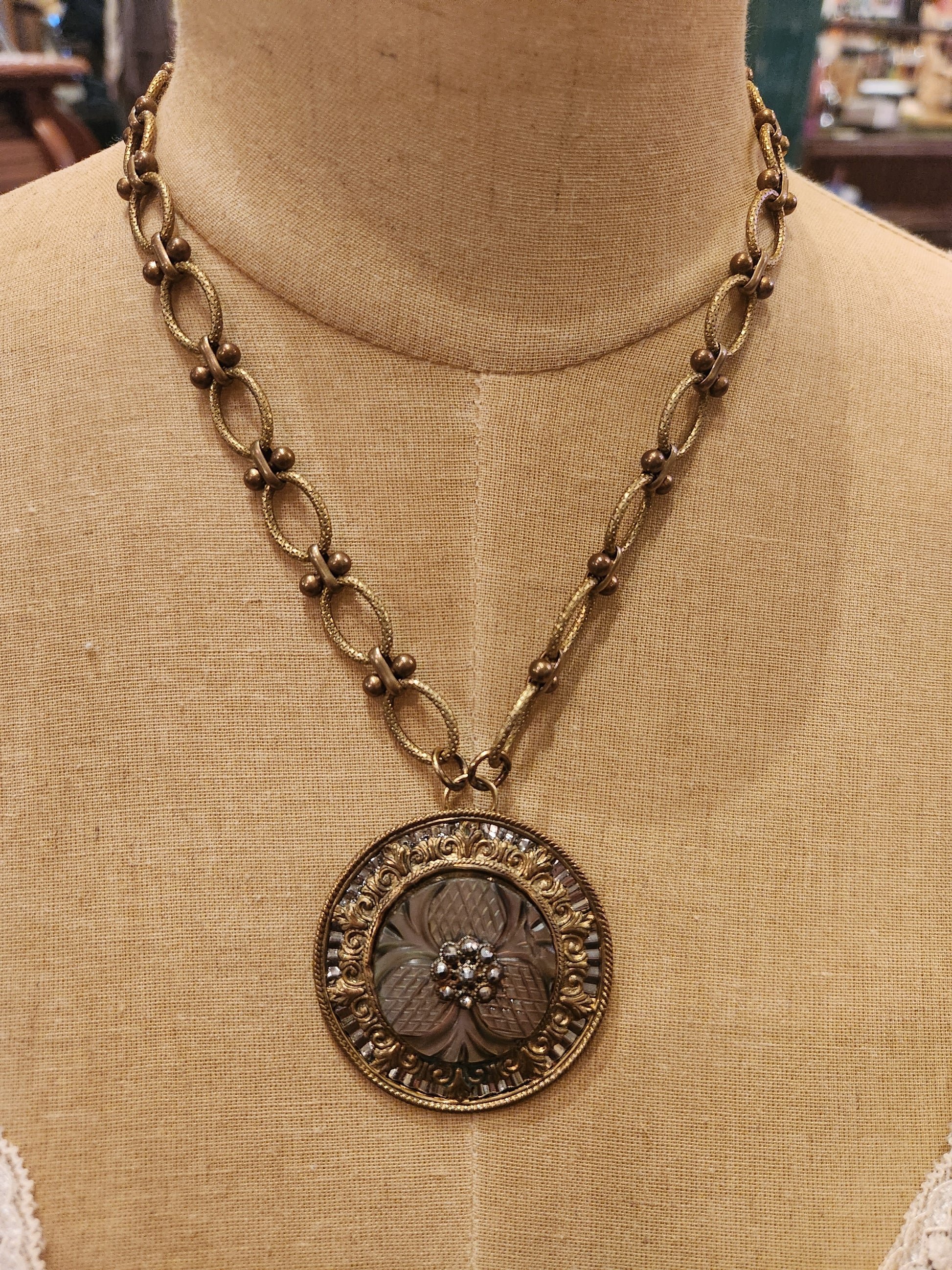 OOAK Vintage Chain with Vintage Victorian Button Pendant