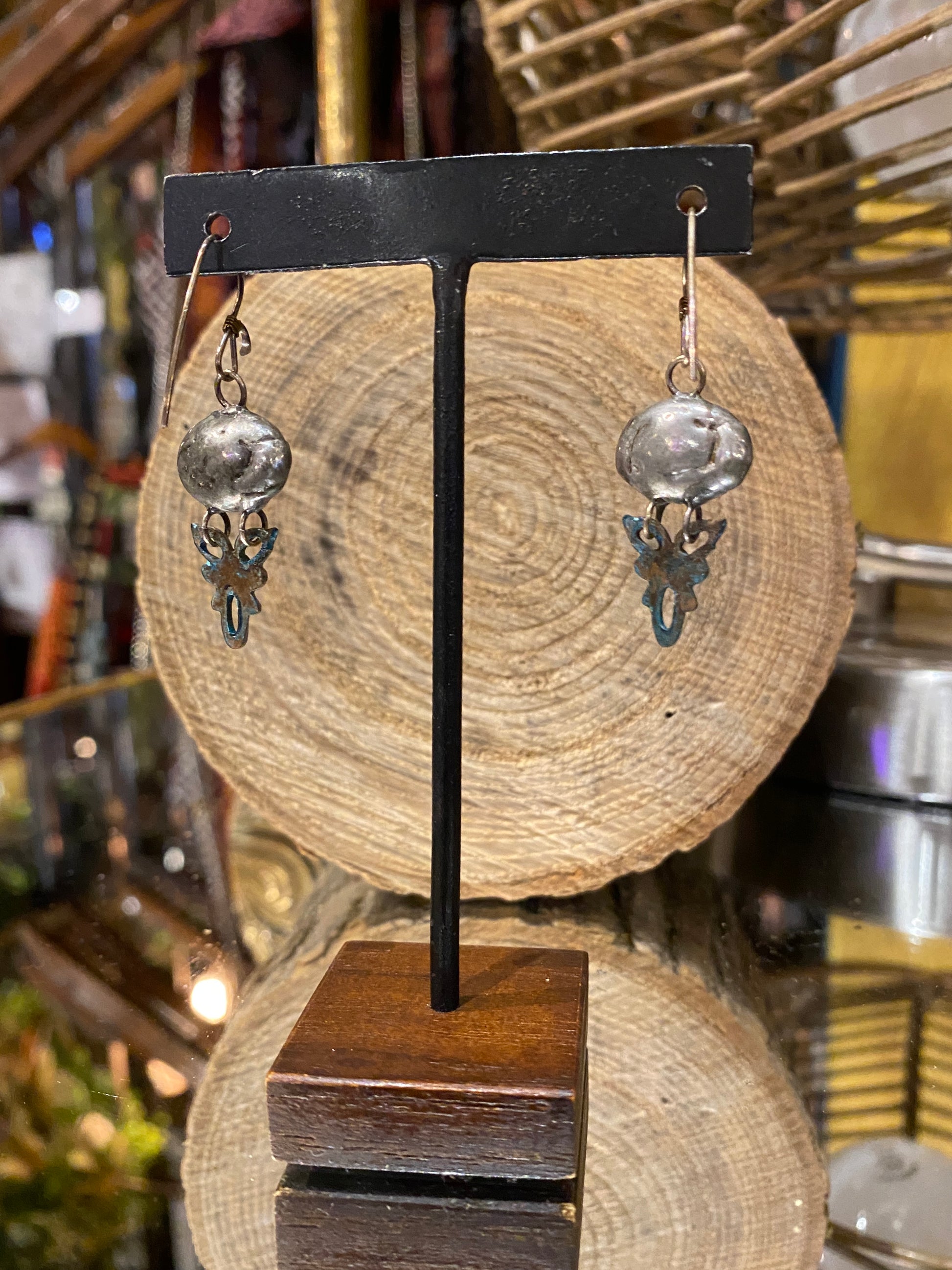 "I use vintage pieces and cicada wings in most of my work. These components are often flawed or show signs of age. This makes them even more special to me. Semi-precious stones are soldered with lead-free solder and treated with a patina so they have an aged look. Sterling is oxidized for the same reason. Nothing here is clean and perfect and mostly one of a kind." - Bijou Savvy