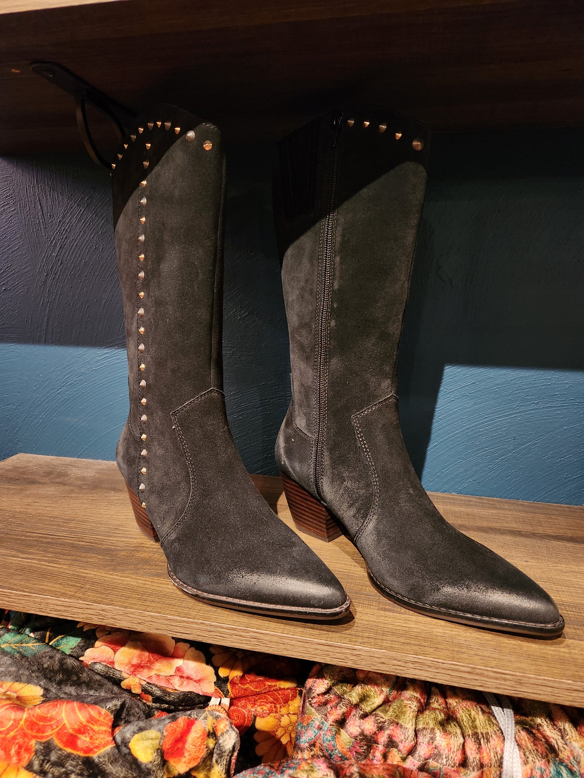 Step into timeless style with the Yoli Mid Calf Western Boot in black suede. Featuring a sleek mid-calf height and distinctive stud details, these boots combine rugged western charm with refined craftsmanship. The soft suede offers comfort and durability, making them perfect for both everyday wear and special occasions. Elevate your wardrobe with a versatile boot that delivers bold character and lasting appeal.